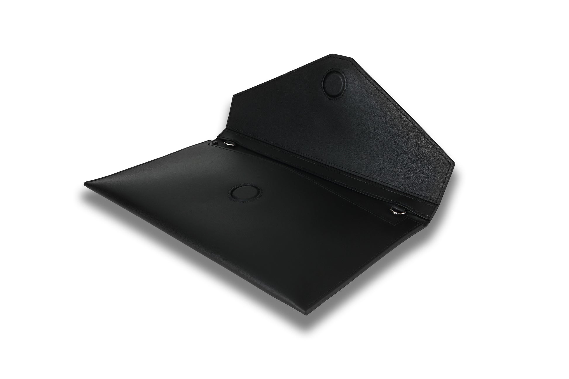 El bolso de mano tipo sobre De la Cruz de CACTO se reconoce al instante gracias a su icónica placa frontal de obsidiana cortada a mano. Este codiciado artículo es un accesorio elegante y compacto para los básicos de noche. Llévalo a una salida nocturna con tus amigos o a un sofisticado evento de etiqueta.